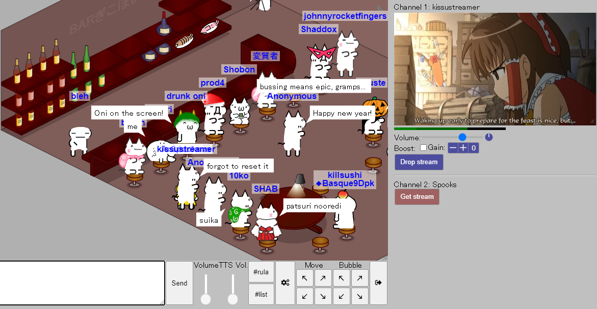 Remember to make plans for New Year's Day/Night as we hang out in Gikopoi again, as is tradition. If you're someone that has plans to try streaming stuff like anime or games or audio, now is the time to do the troubleshooting because it can be very annoying to set it up since you have to convert the mic signal to some sort of emulated audio thing. Anyway, I hope to see you there. Remember to be on your best hikarin behavior because we'll be interacting with other communities! We must ensure a hikarin cultural victory! https://gikopoipoi.net/ Be there and be square.