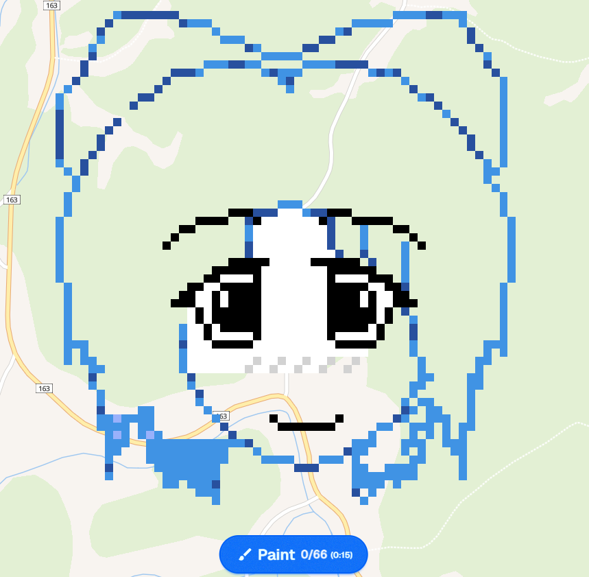 Hikarins, let's place a happy pixel art on the map. Decide where it should be placed https://wplace.live/