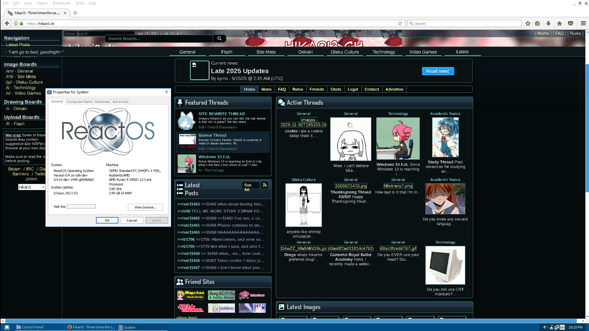 Hello hikarin three channel. I am poasting from ReactOS. Ask me anything.