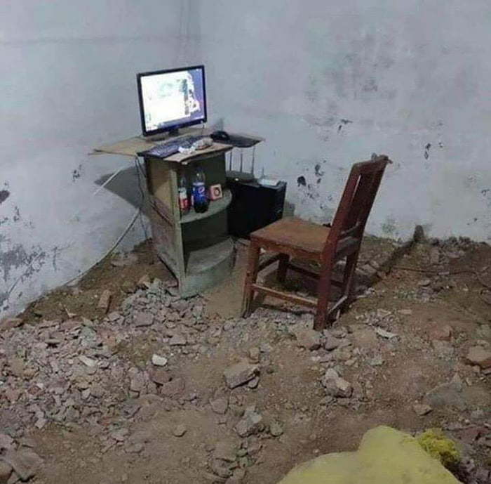 My battle station is a mess of cheap peripherals, wires and a cheap laptop. Empty uncomfortable table. That's all. My room doesn't have anything my mom hadn't put there. I try to be as minimal as possible. I don't want to posses anything. I want to be left the fuck alone in a secluded space. I hate you show offers.