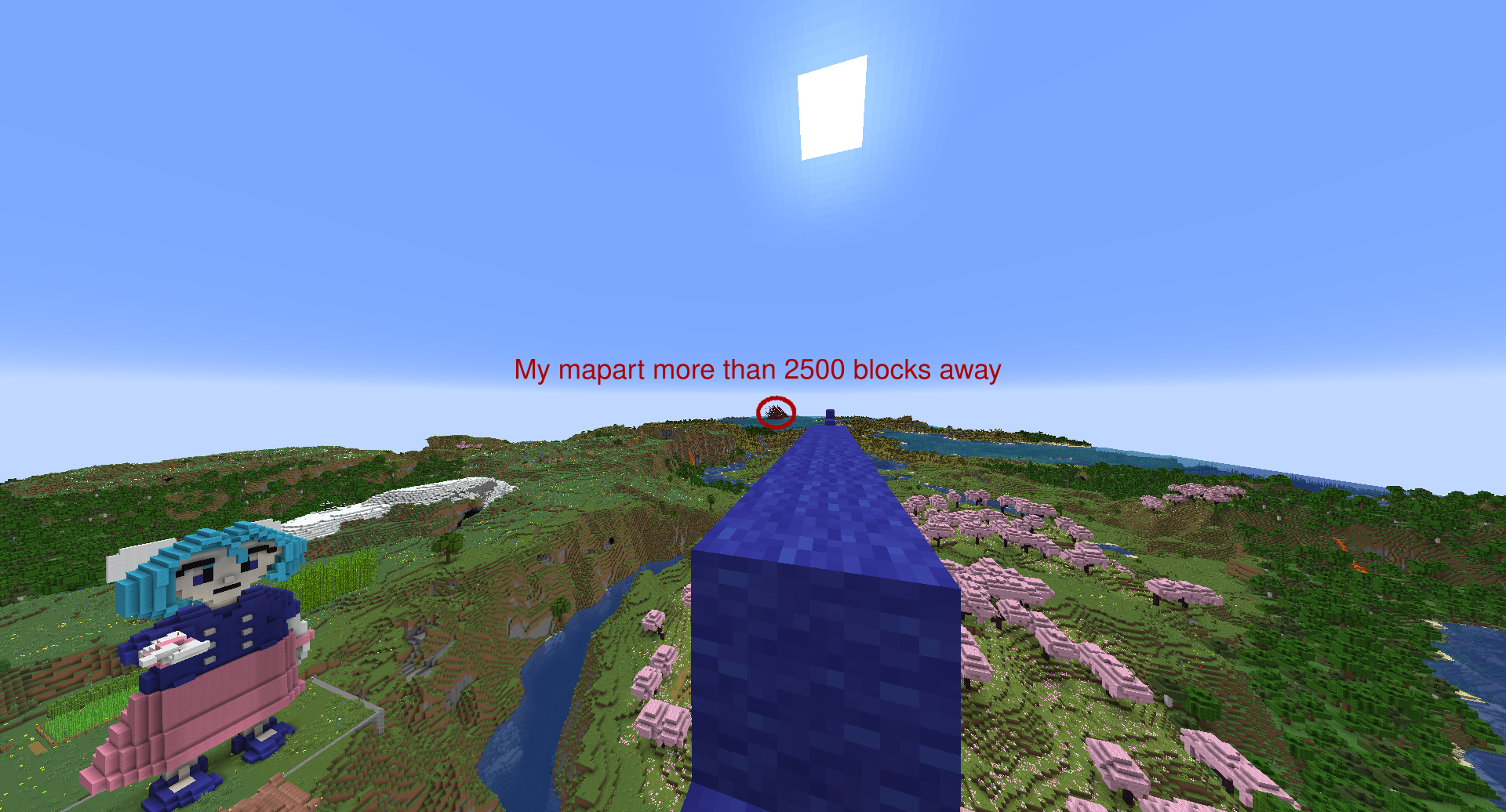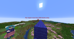 Here's the map building. I don't know why the video got these artifacts, but it happened after I toggled Minecraft to full screen. Anyway, just ignore them. If anyone wants to go there, the coordinates are X= 2560 / Z= -300. There's a nether tunnel with a minecart that takes you there, just go up the stairs right next to the portal and follow the path that goes -Z